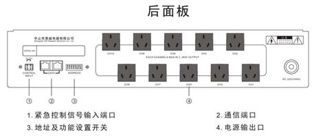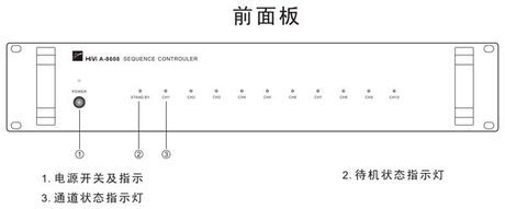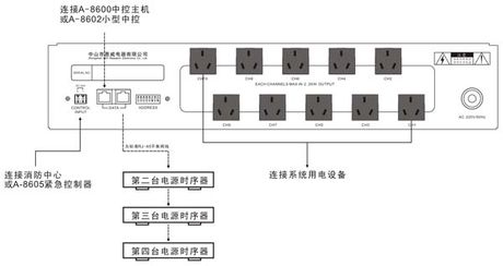 1.按顺序延时开启/关闭10路电源输出端口 2.可通过A-8602小型中控或A-8600中控主机进行管理 3.可通过紧急控制端口强行打开全部电源输出 4.插座总容量可达6KVA